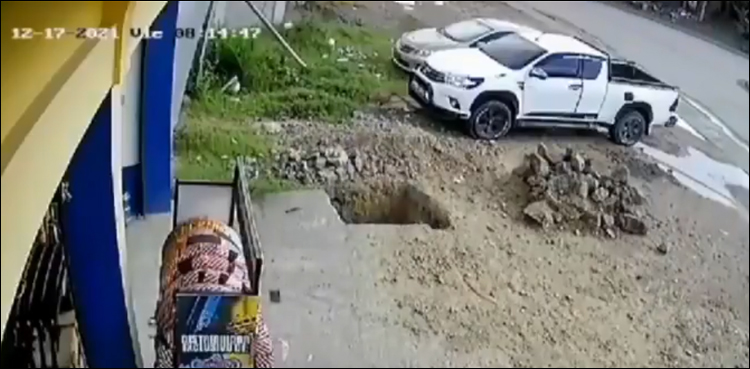 سوشل میڈیا پر وائرل ویڈیو میں دیکھا جا سکتا ہے کہ ایک ٹائر شاپ کے باہر ایک شہری موٹر سائیکل ریورس کرنے کی کوشش کرتے ہوئے گہرے گڑھے میں گر کر غائب ہو گیا۔