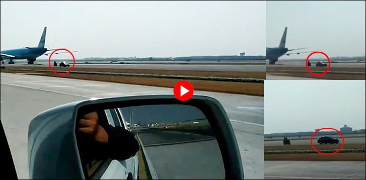 اس ڈرامائی منظر کو سڑک کنارے کھڑی گاڑی میں بیٹھے شخص نے ریکارڈ کیا جس میں کار سوار کو سیکیورٹی حصار توڑ کر بنکاک کے سوارن بھومی ایئرپورٹ کے رن وے پر دیکھا جاسکتا ہے۔ رپورٹ کے مطابق یہ واقعہ منگل کے روز پیش آیا۔