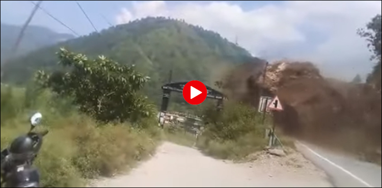 بھارتی میڈیا رپورٹ کے مطابق ریاست اتراکھنڈ کے ٹہرہ ضلع میں رشیکیش چمبا روڈ پر موٹر سائیکل سوار لینڈ سلائیڈنگ کی زد میں آنے سے بچ گیا۔