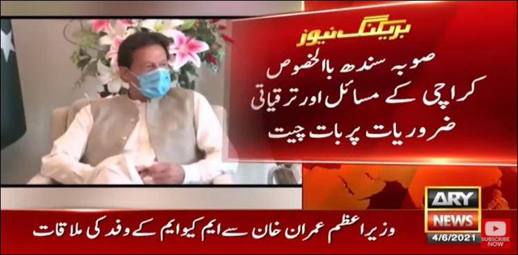 ایم کیو ایم وفد نے کرا چی پیکج پر وزیراعظم عمران خان کا شکریہ ادا کیا اور پیکج پر مؤثر عمل درآمد کی اہمیت پر بھی زور دیا۔
