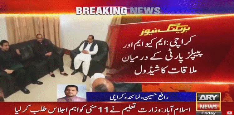 تفصیلات کے مطابق متحدہ قومی موؤمنٹ پاکستان نے وفد کی وزیراعلیٰ سندھ مراد علی شاہ سے ملاقات نے کی، ملاقات کے دوران صوبائی کابینہ کے مرتضیٰ وہاب، امتیاز شیخ، سعید غنی اور ناصر شاہ شامل تھے، جبکہ ایم کیو ایم کی جانب سے وفد میں کنور نوید جمیل، میئر کراچی وسیم اختر اور خواجہ اظہار موجود تھے۔