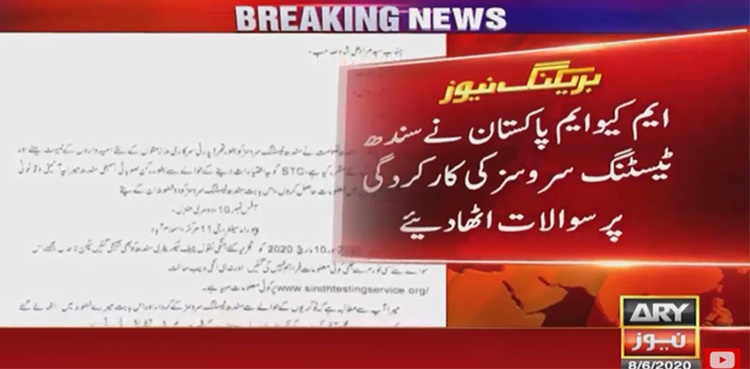 کراچی: ایم کیو ایم پاکستان نے سندھ ٹیسٹنگ سروسز کی کارکردگی پر سوالات اٹھاتے ہوئے صوبائی حکومت سے ملازمتوں کیلئےٹیسٹنگ سروسز کی کارکردگی سامنےلانے کا مطالبہ کر دیا۔