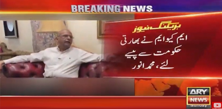 لندن: ایم کیو ایم کے سابق رہنما محمد انور نے انکشاف کیا ہے کہ ایم کیوایم نے بھارتی حکومت سے پیسے لیے تھے۔
