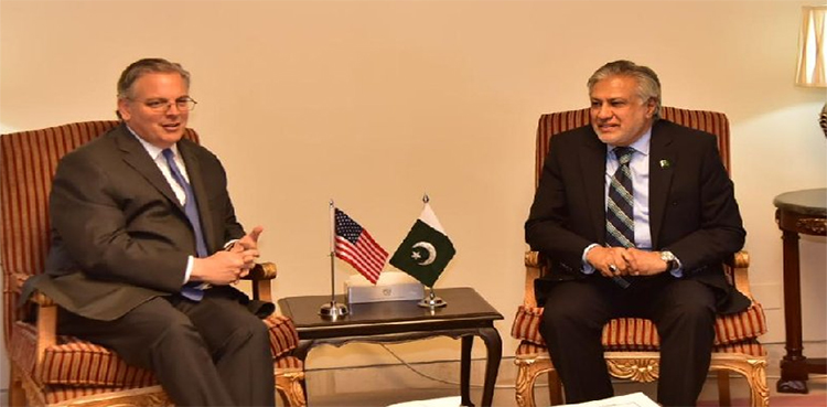 تفصیلات کے مطابق امریکی سفیر ڈونلڈبلوم کی وزیرخزانہ اسحاق ڈار سے ملاقات ہوئی جس میں دونوں فریقین نے مشترکہ دلچسپی کے دیگر امور پر تبادلہ خیال کیا۔