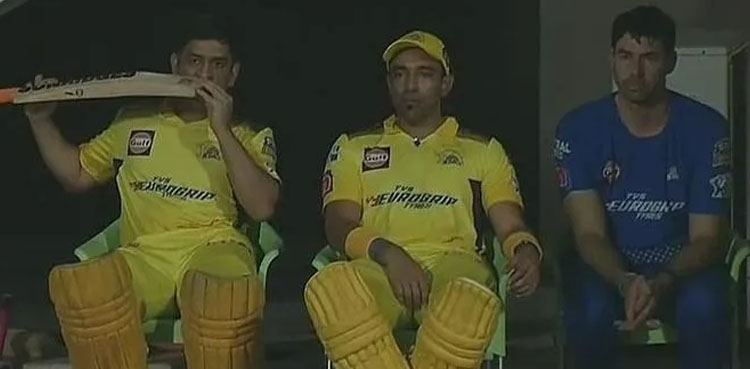 دہلی کیپٹیلز سے میچ میں بیٹنگ کے انتظار میں دھونی ایسا کرتے پائے گئے جس کی فوٹیج وائرل ہوگئی تھی۔