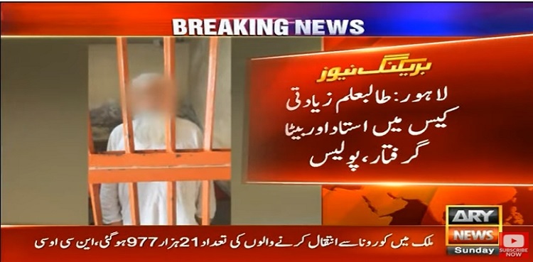 لاہور: طالبعلم زیادتی کیس میں پولیس نے استاد اور اس کے بیٹے کو گرفتار کرلیا ہے۔