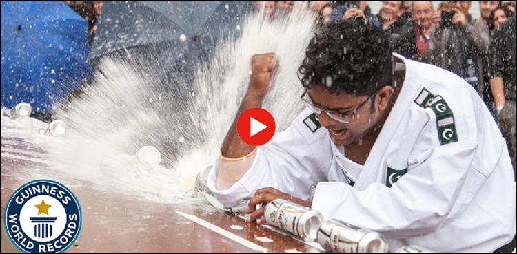 گنیز بک آف ورلڈ ریکارڈ میں پانچ سال سے ریکارڈ بنانے والے پاکستانی نوجوان نے ایک بار پھر سر سے سب سے زیادہ بوتلیں کھولنے کا علمی ریکارڈ اپنے نام کرلیا۔