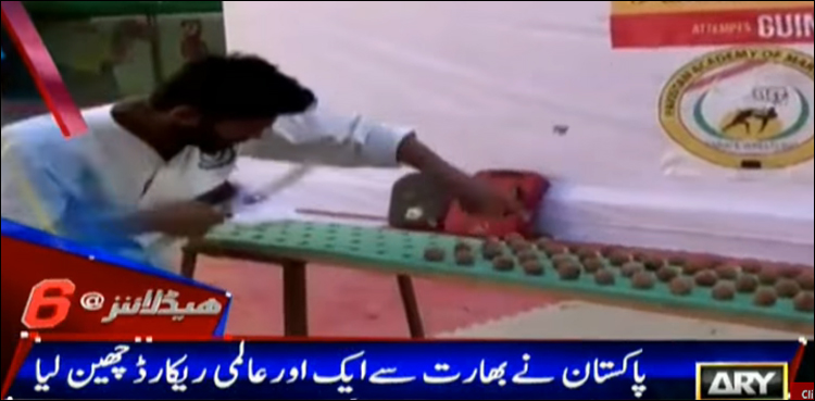 واضح رہے کہ اس سے قبل مارشل آرٹس کے پاکستانی ماہر راشد نسیم نے ایک منٹ میں ہتھیلی سے 278 اخروٹ توڑ کر بھارت سے عالمی ریکارڈ چھین کر اپنے نام کرلیا تھا۔