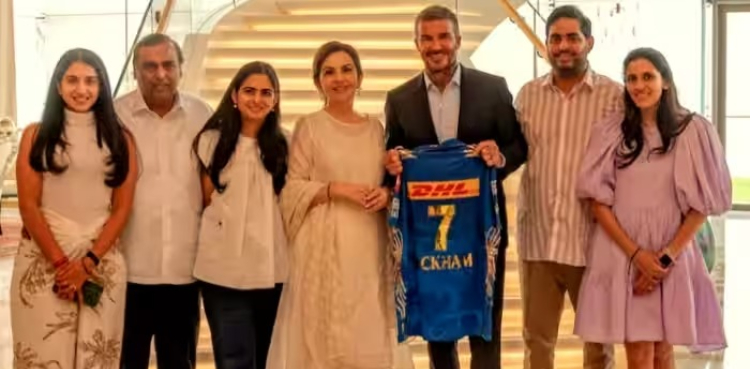 بھارت کے عظیم تاجر مکیش امبانی نے اپنی اہلیہ نیتا امبانی کے ہمراہ مشہور فٹبالر ڈیوڈ بیکہم کی ممبئی میں اپنی رہائش گاہ پر شاندار میزبانی کی۔