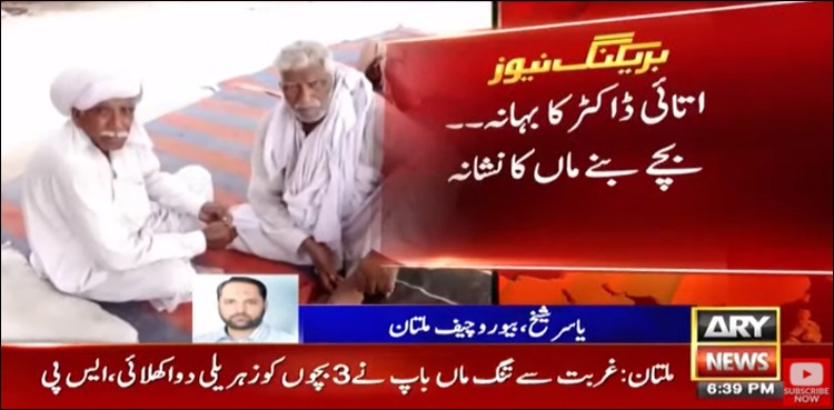 اے آر وائی نیوز کے مطابق ملتان میں 22 مئی کو تین بچوں کی ہلاکت ہوئی، جس پر والدین نے دعویٰ کیا کہ انہیں اتائی ڈاکٹر نے کھانسی کی دوا دی تھی جو کھانے کے بعد اُن کی حالت بگڑ گئی۔