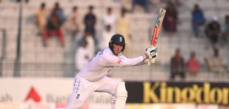 تاہم اس کے بعد آنے والے بین ڈکٹ نے جارحانہ انداز اختیار کرتے ہوئے تیز رفتار نصف سنچری مکمل کی جب کہ لنچ بریک تک پاکستانی بولرز مزید کوئی وکٹ حاصل نہ کر سکے۔