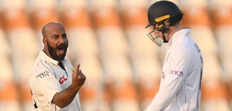 نعمان علی نے پہلے ٹیسٹ میچ کے ہیرو ہیری بروک اور جو روٹ کو ایل بی ڈبلیو آؤٹ کر کے انگلینڈ کی بیٹنگ لائن کی کمر توڑ دی ہے۔ اس کے بعد تو نعمان علی جیسے چھا گئے اور انہوں نے کسی کو انگلش بیٹر کو زیادہ دیر وکٹ پر ٹکنے نہ دیا۔ کپتان بین اسٹوکس (37)، بریڈن کرس (27)، جیمی اسمتھ (6)، جیک لیچ اور شعیب بشیر کو ٹھکانے لگایا۔