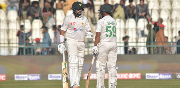 پاکستان کی آخری امید سعود شکیل ہے جو کہ 54 رنز کے ساتھ کریز پر موجود ہے ان کے ساتھ آل راؤنڈر فہیم اشرف 3 رنز کے ساتھ موجود ہے۔