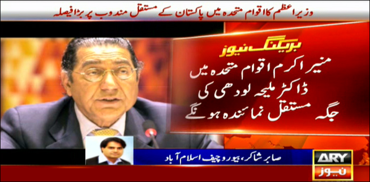 اسلام آباد: وزیراعظم عمران خان نے اقوام متحدہ میں ملیحہ لودھی کی جگہ منیر اکرم کو مستقل مندوب مقرر کردیا۔