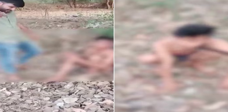 بھارتی ریاست مدھیا پردیشں سے سامنے آنے والی وڈیڈیو کسی نامعلوم جنگلی علاقے کی ہے جس میں دو آدمی ایک شخص کو نیم برہنہ کرکے بیلٹ سے مار رہے ہیں، اس دوران وہ اسے کتے کی طرح بھونکنے پر بھی مجبور کرتے ہیں اور مغلظات بکتے ہیں۔