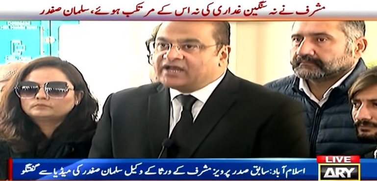 سلمان صفدر ایڈووکیٹ نے کہا کہ پرویز مشرف کی زندگی میں 4 سال تک ان کی اپیل نہیں سنی گئی۔ ان کی بیماری کے بھی تمام ثبوت آتے رہے۔ پرویز مشرف کے حوالے سے تمام باتیں درست تھیں۔