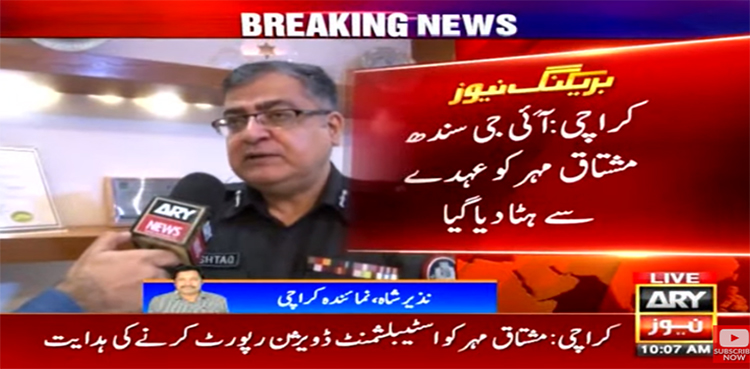 کراچی: صوبہ سندھ میں دہشت گردی کے حالیہ واقعات کے بعد آئی جی سندھ مشتاق مہر کو عہدے سے ہٹادیا گیا ہے۔