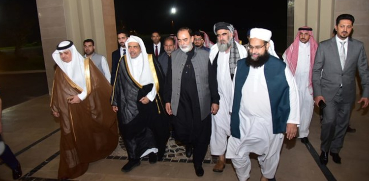 وفاقی وزیر برائے مذہبی امورمفتی عبدالشکور نے معزز مہمان کا استقبال کیا، اس موقع پر سینیٹرطلحہ محمود،حافظ طاہراشرفی ،سعودی سفیرنواف سعید المالکی بھی موجود تھے۔