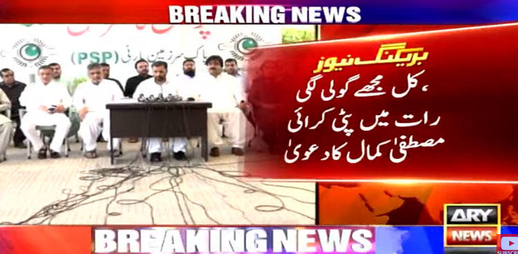 اے آر وائی نیوز کے مطابق چیئرمین پی ایس پی مصطفیٰ کمال نے نیوز کانفرنس کرتے ہوئے کہا کہ مجھے کل گولی لگی اپنے ساتھیوں کواس لیے نہیں بتایا تاکہ کشیدگی نہ پھیلے کل ہم پرتشدد کیا گیا گولیاں چلائی گئیں ہم نے پلٹ کر پتھر بھی نہیں مارا۔