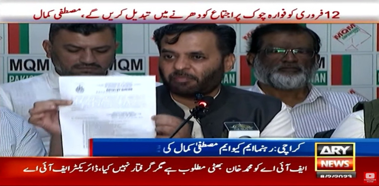 کراچی میں نیوز کانفرنس کرتے ہوئے ایم کیو ایم کے رہنما مصطفیٰ کمال نے کہا کہ ایم کیوایم کی جانب سے بارہ فروری کو عظیم الشان اجتماع اور دھرنا ہوگا، دھرنا دینا ایم کیو ایم پاکستان کا آئینی حق ہے۔