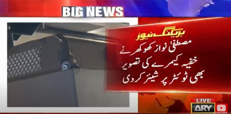مصطفی نواز کھوکھر نے لکھا کہ میں نے اور مصدق ملک نے پولنگ بوتھ میں خفیہ کیمرہ لگا دیکھا ہے، مصطفی نواز کھوکھرنے خفیہ کیمرے کی تصویر بھی ٹوئٹر پر شیئر کردی ہے۔