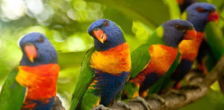 قوس قزح کے رنگ سے مزین یہ پرندے نیو ساؤتھ ویلز کے شمالی علاقوں میں کثرت سے پائے جاتے ہیں، انہیں وائلڈ ‘رینبو لوری کیٹ’ کے نام سے بھی پکارا جاتا ہے۔