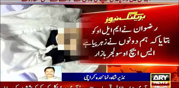 ایس ایچ او سولجر بازار وقار عظیم نے بتایا کہ مرنے سے پہلے رضوان نے میڈیکو لیگل افسر عبدالباسط سے بات کی تھی، رضوان نے ایم ایل او کو بتایا کہ ہم سی ویو پر موجود تھے جہاں ہم دونوں نے زہر پیا، زہر پینے کے بعد ہم دونوں کو گھر والے سولجر بازار گھر لے کر گئے، ہلاک شخص نے ایم ایل او کو یہ بھی بتایا کہ انھیں سولجر بازار سے پھر جناح اسپتال منتقل کیا گیا۔