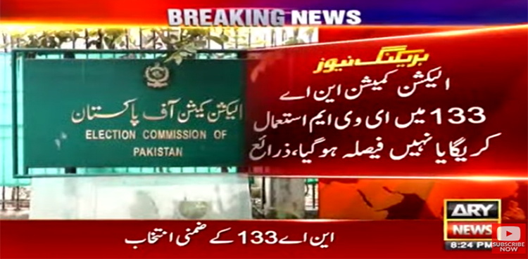 الیکشن کمیشن نے این اے133 لاہور کے ضمنی انتخاب میں الیکٹرانک ووٹنگ مشین استعمال نہ کرنے کا فیصلہ کیا ہے۔