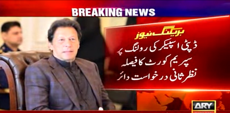 اسلام آباد : چیئرمین تحریک انصاف عمران خان نے ڈپٹی اسپیکر کی رولنگ پر سپریم کورٹ کے فیصلے پر نظرثانی اپیل دائر کردی، جس میں عدالت عظمیٰ کا فیصلہ پارلیمانی کارروائی میں مداخلت اور آرٹیکل انہتر سے متصادم قرار دیا۔