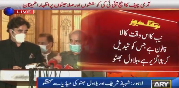 چیئرمین پیپلز پارٹی بلاول بھٹو نے مزیدکہا کہ نیب کا اس وقت کالا قانون ہے جس کو تبدیل کرنا ناگزیر ہے۔