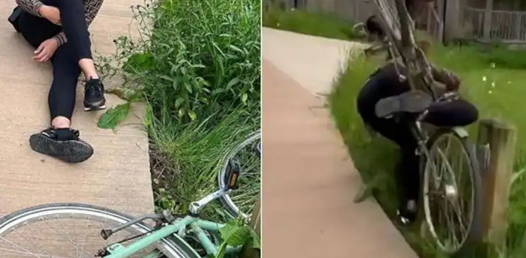 اداکارہ سائیکل چلاتے ہوئے پیچھے دیکھ رہی تھیں کہ سامنے موجود ایک رکاوٹ سے ٹکرا کر قلا بازی کھاتے ہوئے گر پڑیں۔