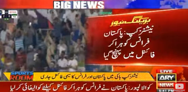 نیشنز ہاکی کپ میں پاکستان فرانس کو ہرا کر فائنل میں پہنچ گیا ہے۔