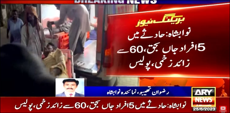 نوابشاہ: سندھ کی تحصیل نوابشاہ میں دو مسافر کوچیں بری طرح ٹکرا گئیں، حادثے میں 7 افراد جاں بحق اور 60 سے زائد زخمی ہو گئے۔