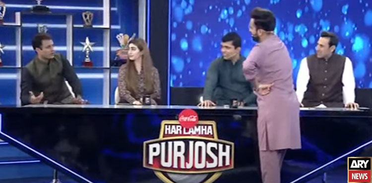 اداکارہ نوال سعید سے پروگرام کے سیگمنٹ ’معصومانہ میچ‘ میں معروف شاعر جون ایلیا کا شعر ’اچھا خاصا بیٹھے بیٹھے گم ہوجاتا ہوں‘ سے متعلق پوچھا گیا اور میچ کے مختلف کلپس دکھائے گئے جس کے اداکارہ نے درست جوابات دیے۔