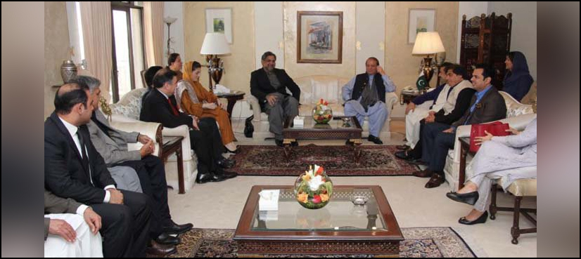 اس سے قبل نوازشریف پنجاب ہاؤس کی بالائی منزل پر پہنچے تو لیگی کارکنان اوررہنماؤں نے نوازشریف کے حق میں اور عدلیہ مخالف نعرے لگائے۔