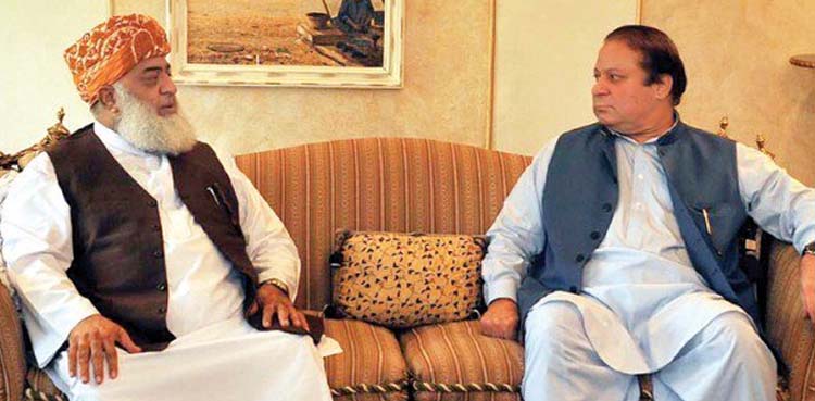 مسلم لیگ ن کے قائد نواز شریف کو جے یو آئی ف کے سربراہ مولانا فضل الرحمان نے مخلوط حکومت کی تجویز دے دی۔