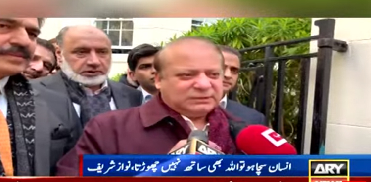 لندن : مسلم لیگ ن کے قائد نواز شریف کا کہنا ہے کہ انسان سچا ہو تواللہ بھی ساتھ نہیں چھوڑتا، حق اور سچ پوری قوم اور دنیا کے سامنے آگیا ہے۔
