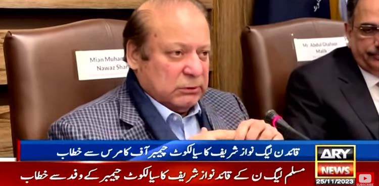 اے اْر وائی نیوز کے مطابق سیالکوٹ میں چیمبر آف کامرس سے خطاب کرتے ہوئے نواز شریف نے کہا کہ وہ شخص آیا نہیں تھا لایا گیا تھا اور اس نے جو ملک کا حشر کیا سب نے دیکھا اس کے کرتوتوں کی سزا آج بھی ملک بھگت رہا ہے۔