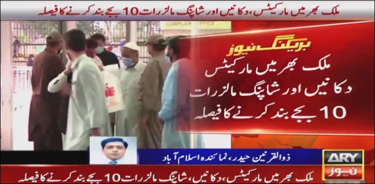 اسلام آباد: کورونا وبا کی دوسری لہر کے پیش نظر نیشنل کمانڈ اینڈ کنٹرول سینٹرل (این سی او سی) نے کل سے ملک بھر میں مارکیٹس، دکانیں اور شاپنگ مالز رات 10 بجے بند کرنے کا فیصلہ کرلیا۔