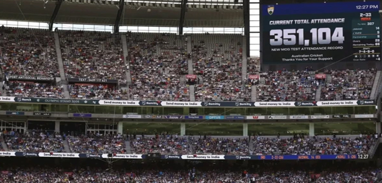 بھارت اور آسٹریلیا کے درمیان چوتھے ٹیسٹ میچ میں میلبرن کرکٹ اسٹیڈیم میں شائقین کی آمد کا 87 سالہ پرانا ریکارڈ ٹوٹ گیا۔ 26 سے 30 دسمبر تک کھیلے گئے باکسنگ ڈے ٹیسٹ کے پانچ روز کے دوران مجموعی طور پر 3 لاکھ 50 ہزار 700 شائقین نے میدان کا رخ کیا۔