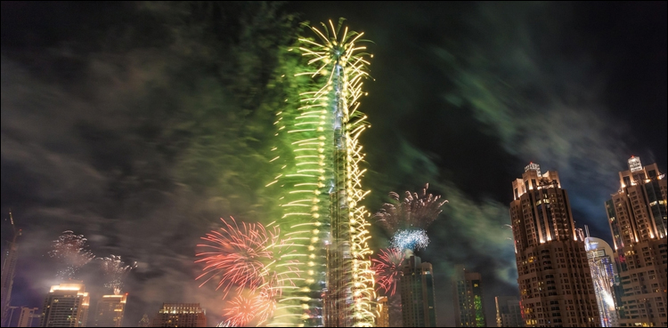 اس ضمن میں دبئی کی بلند و بالا عمارت برج الخلیفہ پر اکتیس دسمبر کی رات ایل ای ڈی لائٹس کا زبردست شو منعقد کیا جائے گا بعد ازاں شاندار آتشبازی بھی ہوگی۔