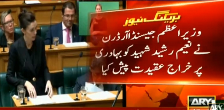 ویلنگٹن: نیوزی لینڈ کی وزیر اعظم نے حملہ آور کو روکنے کے دوران شہادت پانے والے پاکستانی شہری نعیم راشد کو شاندار الفاظ میں خراج تحسین پیش کیا۔