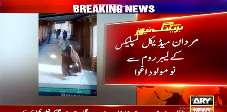 تفصیلات کے مطابق مردان میڈیکل کمپلیکس کے لیبر روم سے نامعلوم خاتون نے گزشتہ روز ایک نومولود کو اغوا کر لیا تھا، برقعہ پوش خاتون کی بچے کے اغوا کی سی سی ٹی وی فوٹیج بھی سامنے آ گئی تھی۔