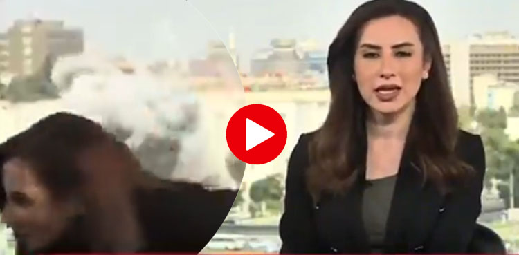 دمشق میں اسرائیل کی بمباری کے دوران خاتون اینکر لائیو نشریات چھوڑ کر بھاگ گئی۔