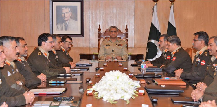 تفصیلات کے مطابق پاک فوج کے شعبہ تعلقات عامہ(آئی ایس پی آر) کے ڈائریکٹر جنرل میجرجنرل آصف غفور کا کہنا ہے کہ آرمی چیف کی زیر صدارت کورکمانڈرز کانفرنس ہوئی، اجلاس میں خطے اور ملکی سیکیورٹی صورت حال کا جائزہ لیا گیا۔