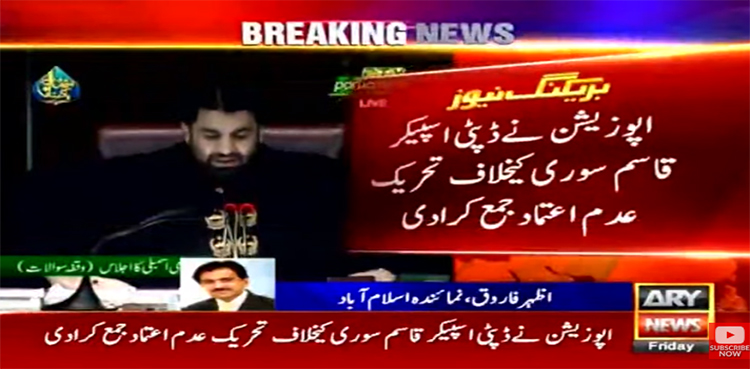 اپوزیشن نے اسپیکر قومی اسمبلی کے بعد ڈپٹی اسپیکر قاسم سوری کے خلاف تحریک عدم اعتماد جمع کرا دی۔