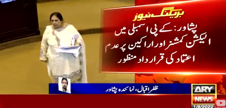 خیبرپختونخوا اسمبلی میں الیکشن کمشنر اور اراکین الیکشن کمیشن کے خلاف عدم اعتماد کی قرارداد منظور کر لی گئی ہے۔