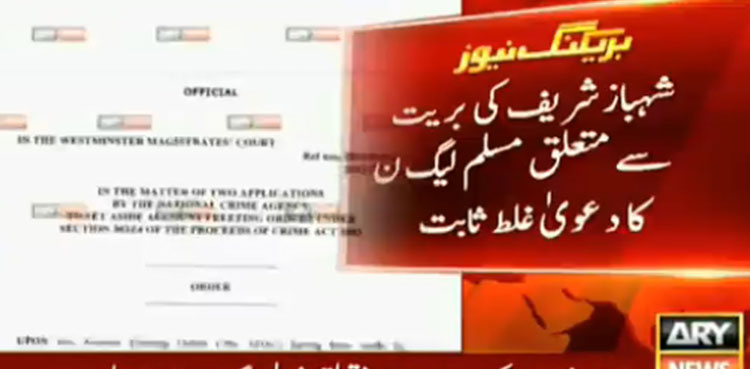 اسلام آباد: برطانوی عدالت کے آرڈر کی کاپی نے شہبازشریف کی بریت سےمتعلق مسلم لیگ ن کا دعویٰ غلط ثابت کردیا ، آرڈر میں شہبازشریف کانام اور بریت کاکوئی ذکر نہیں۔