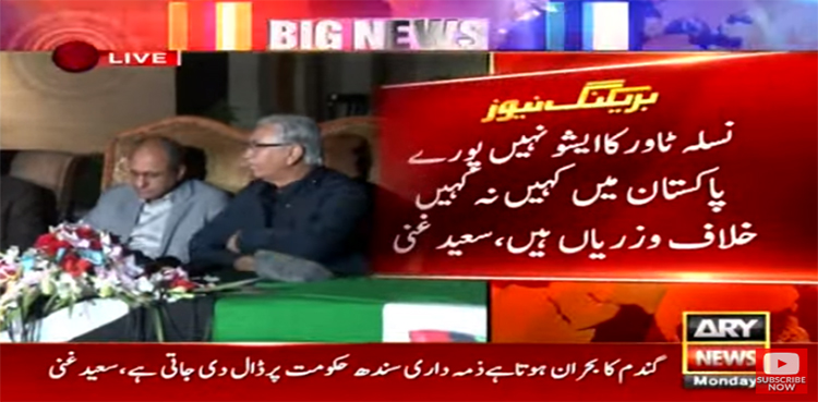 وزیر اطلاعات و محنت سندھ سعید غنی نے کہا ہے کہ نسلہ ٹاور کا ایشو نہیں پورے پاکستان میں کہیں نہ کہیں خلاف وزریاں ہیں اسلام آباد میں کنسٹیٹیوشن ایونیو اور بنی گالہ کوبھی ریگولرائز کردیا گیا۔