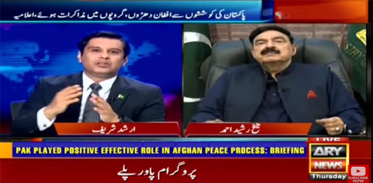 اے آر وائی نیوز کے پروگرام پاور پلے میں گفتگو کرتے ہوئے شیخ رشید نے کہا کہ آج ایک زبردست میٹنگ ہوئی ہےتمام معاملات پربات ہوئی ہے آج کی قومی سلامتی کمیٹی کااجلاس بہت زبردست تھا ڈی جی آئی ایس آئی نےافغان کشمیراورعالمی معاملات پربریفنگ دی جب کہ سوالوں کے جواب آرمی چیف قمرجاویدباجوہ نےدیئے۔
